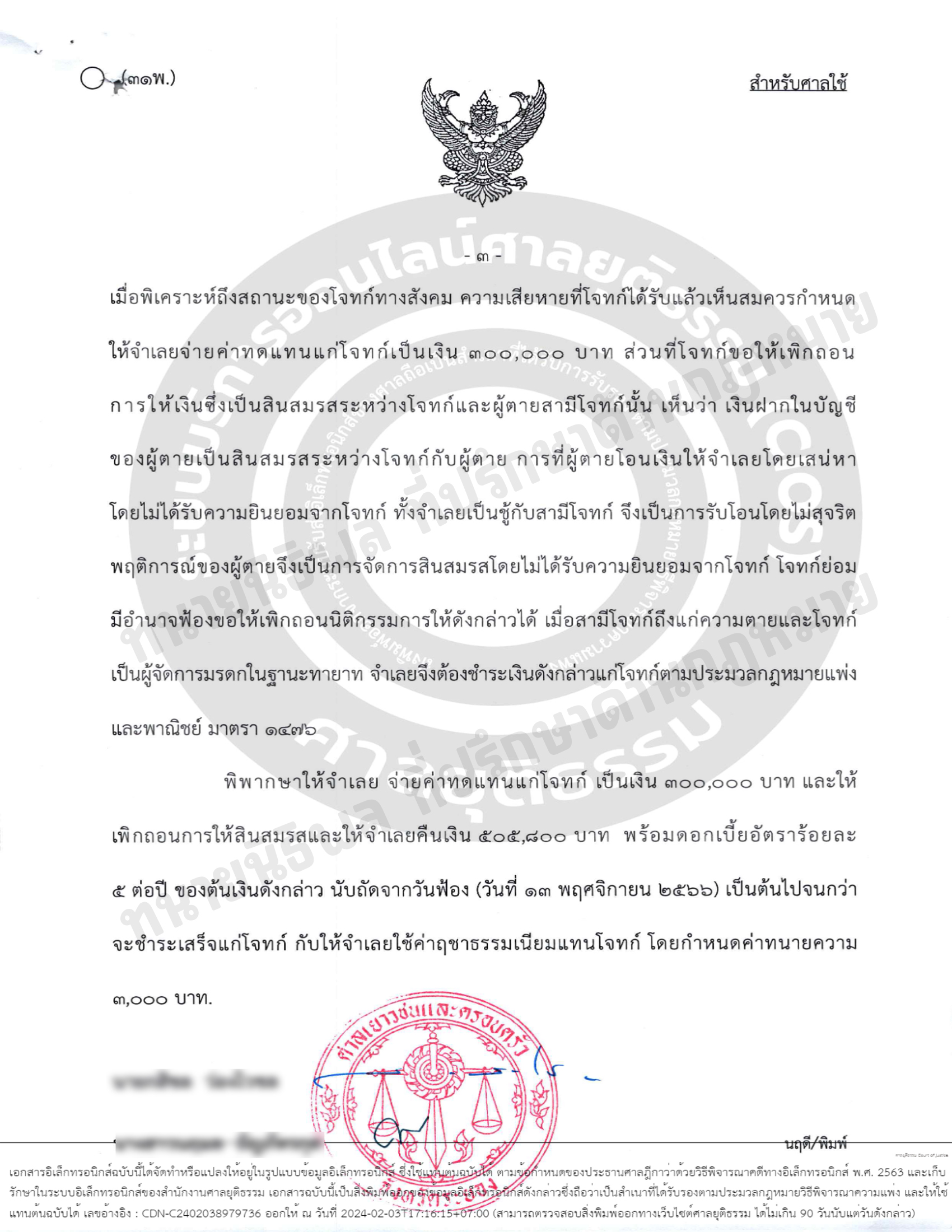 ดังตัวอย่างหลักฐานของสำนักงานทนายนิธิพลดังต่อไปนี้